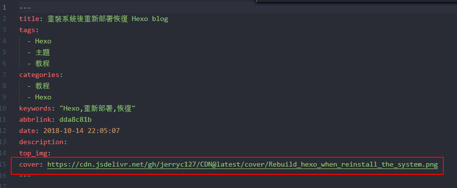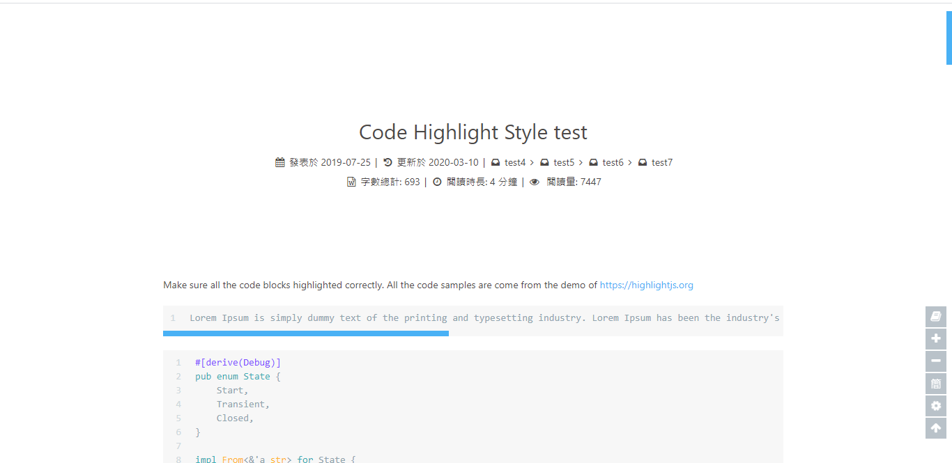 當主題配置文件中的 highlight_shrink 設為false時,可在front-matter添加highlight_shrink: true來單獨配置文章收縮代碼框。
